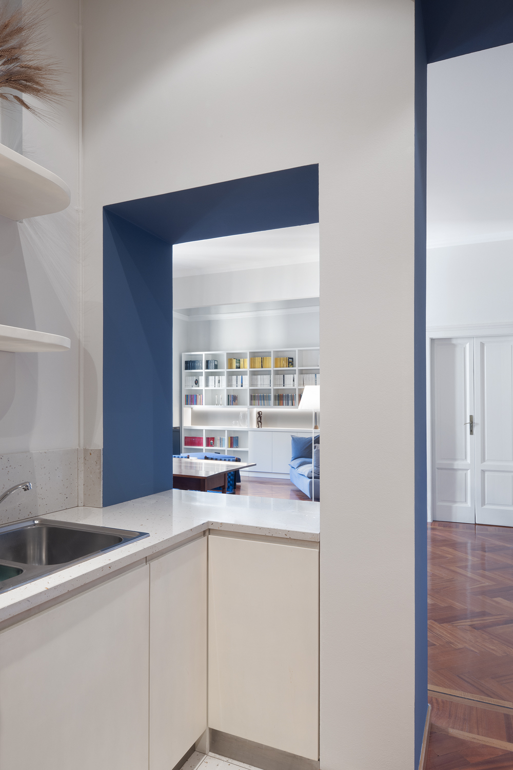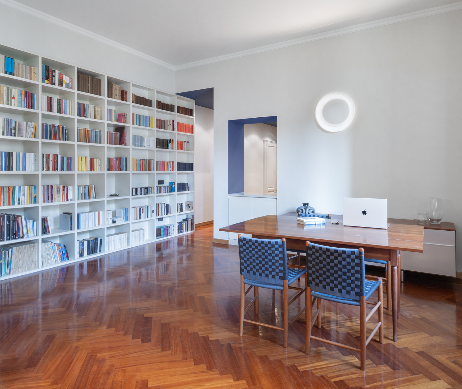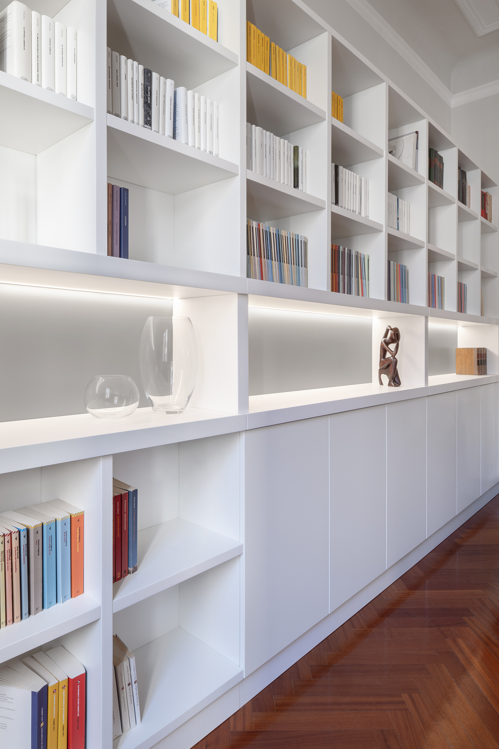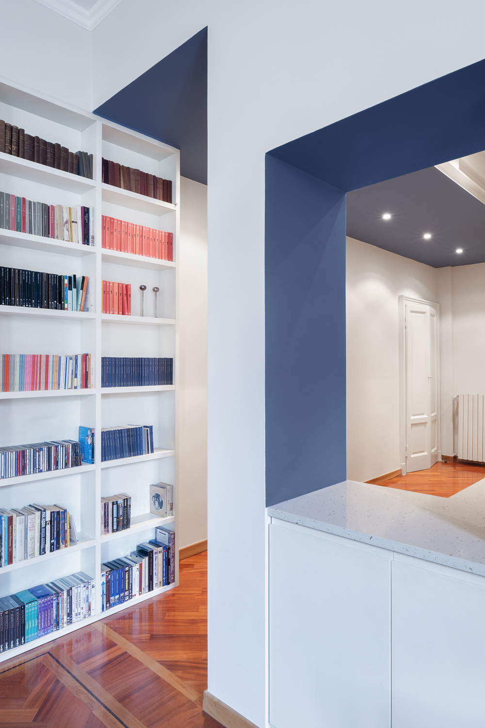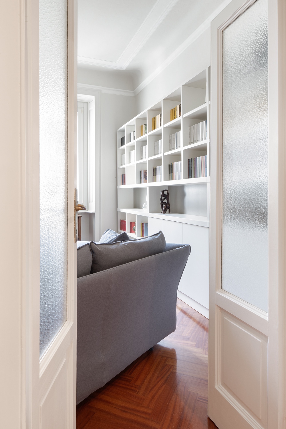 Il progetto di rinnovo di questo appartamento parte dal desiderio della cliente, appassionata lettrice, di dare spazio e valore ai suoi libri.